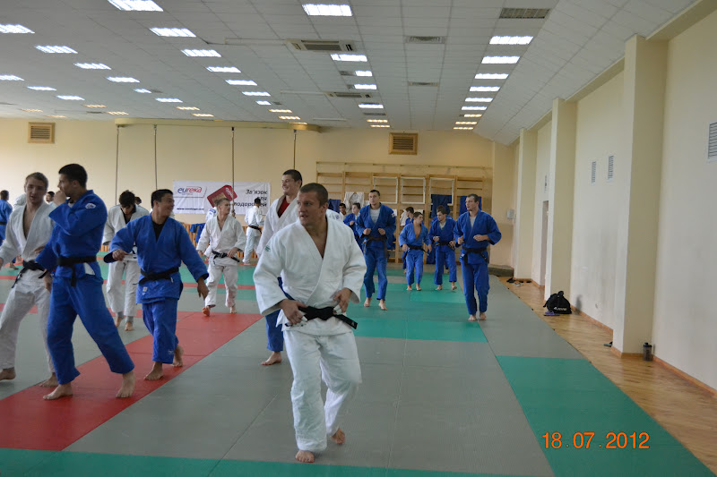 Після короткого розминання, вправ на гнучкість, акробатики, наша олімпійська дружина провела сутичку в не-вадза і на протязі 5-ти хвилин медитували над «учікомі», комбінаціями в русі. Далі, згідно плану тренування, дзюдоїсти виконали кидки на швидкість протягом 30 секунд, декілька серій. Георгій Зантарая виконував кидки вліво і вправо, змінюючи кожного разу направлення і сам кидок. Завершили основну частину тренування сутичками в наге-вадза, а в заключній частині – вправами на гнучкість. Тренування завершилося загальним шикуванням. Старший тренер чоловічої збірної команди України Віталій Дуброва розповів програму вечірнього заняття і після укліну, хлопці і дівчата давали інтерв’ю, фотографувалися.